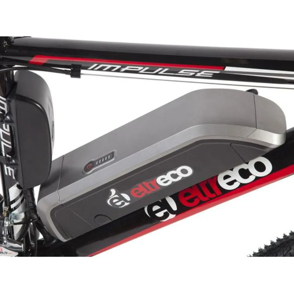 Электровелосипед Eltreco Impulse EM 502 оборудован редукторным двигателем мощностью 300 Вт, он позволяет набирать равномерное ускорение и имеет экономное энергопотребление. Максимальная скорость транспортного средства 25 км/ч. Ободная тормозная система регулирует движение. На бездорожье амортизированная передняя вилка смягчает вибрацию. Литий-ионный аккумулятор емкостью 9 А*ч позволяет проехать на одном заряде 35 км пути при полной нагрузке. Он легко снимается с посадочного места. Зарядное устройство, идущее в комплекте, необходимо подключить на 6 часов для пополнения заряда до 100 процентов.