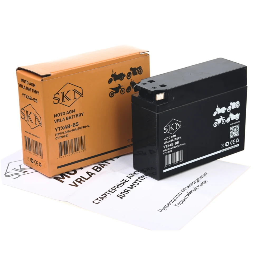 Аккумулятор стартерный для мототехники SKN YTX4B-BS (12V/2,5Ah/40A) [GT4B-5, CT 12025]