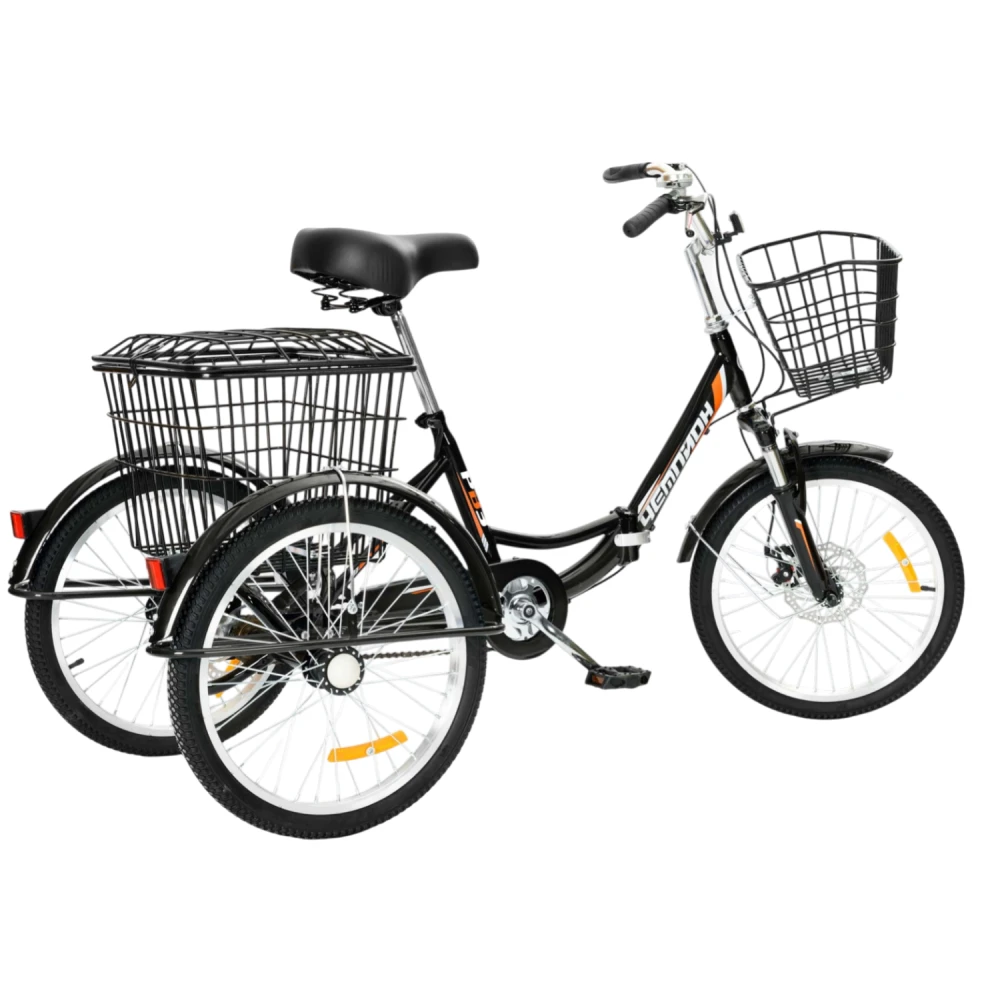 Подходит для прогулок, поездок на дачу/рынок, перевозки покупок (корзины до 50 кг сзади); для взрослых 50+ лет или новичков без подготовки. Складной механизм удобен для метро/авто; трёхколёсная база идеальна для пожилых или с ограниченными возможностями (стабильность); привлекает дачников/садоводов.​​